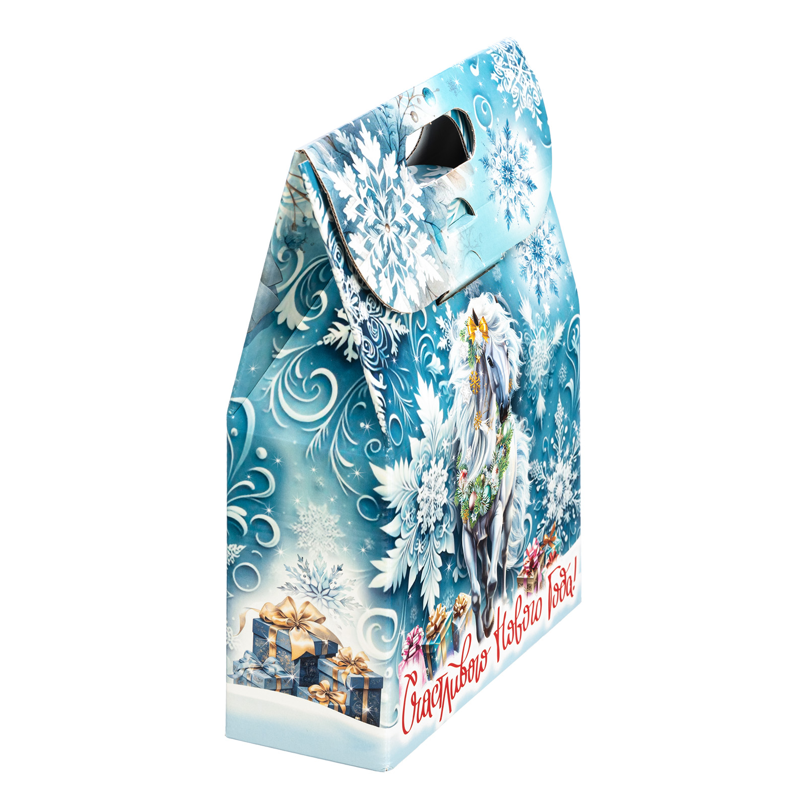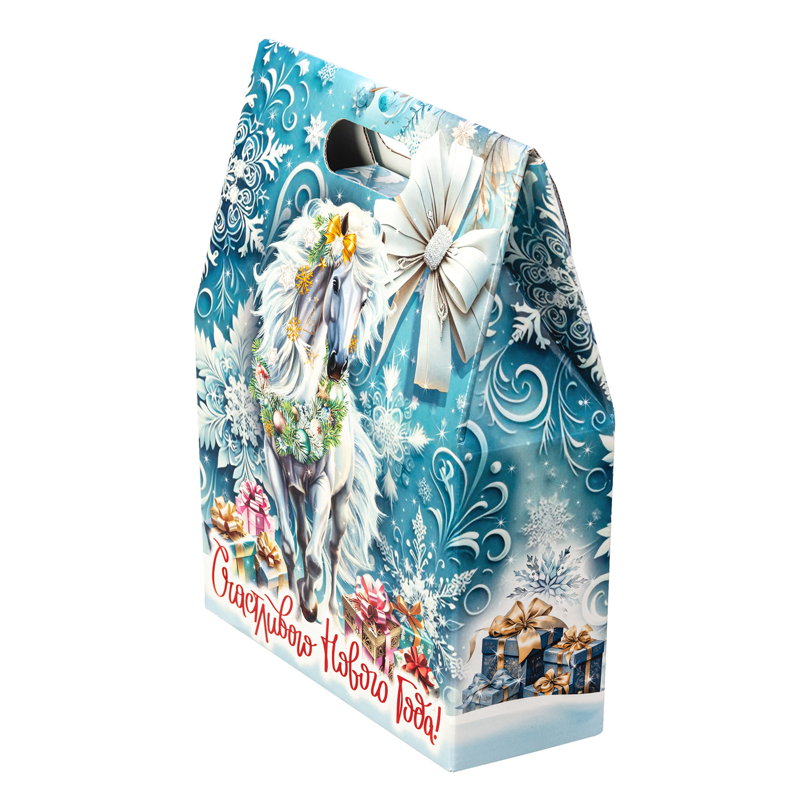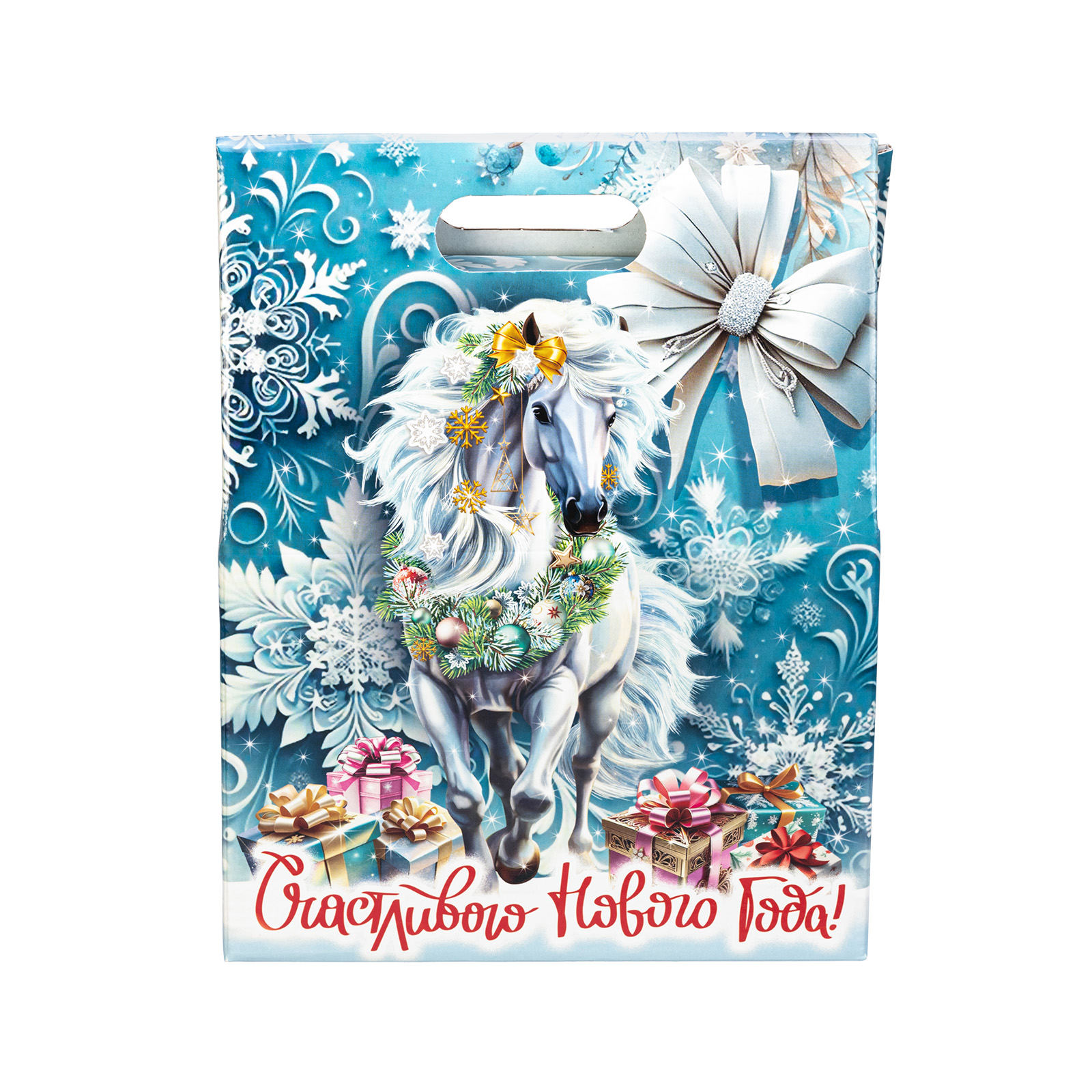 Новогодние сладкие подарки с изображением символа года - это нестареющая классика. Подарочный набор “Белоснежная” - это идеальное сочетание креативной подарочной упаковки и вкусного разнообразного конфетного состава. Подарок представляет собой небольшую картонную сумочку с изображением белой волшебной лошадки на фоне зимнего леса. Снизу красуется контрастное поздравление, а наверху есть удобная ручка. Внутри содержатся вкусные лакомства, с которыми каждое праздничное чаепитие приобретет еще более торжественное и веселое настроение. Подарочный набор - универсален. Его можно вручить как ребенку, так и взрослому.