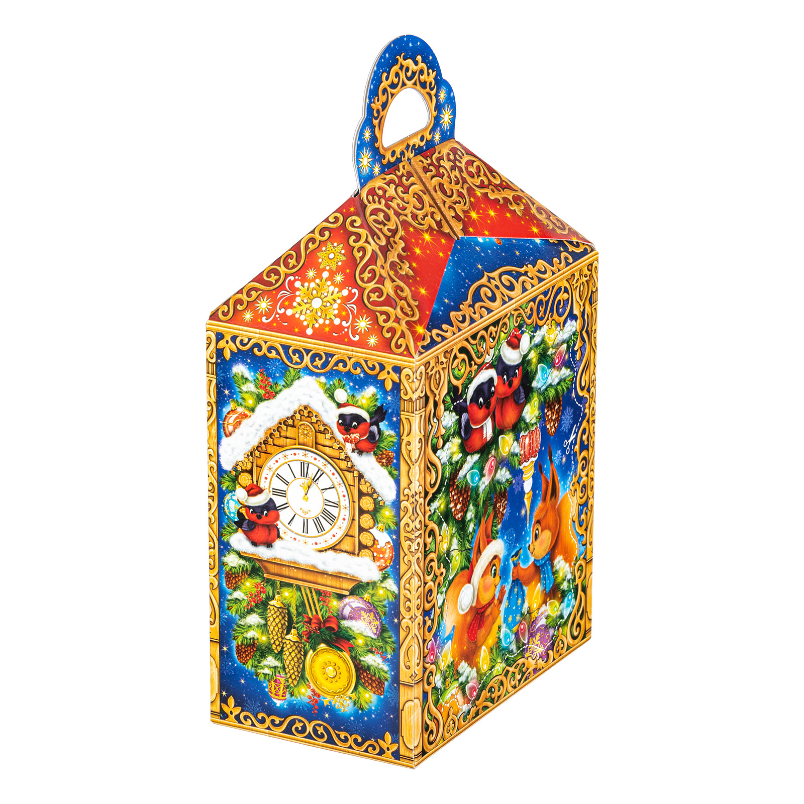 Ищете новогодний сладкий подарок для праздника в школу или детский сад? Присмотритесь к набору “Ларец лесной”.  Его картонная упаковка по своей форме напоминает фонарик, на ней изображен прекрасный зимний лес и его веселые обитатели, которые прибежали с разных уголков, чтобы всем вместе отметить наступающие праздники.  А что же внутри этой яркой упаковки? Там находится более 30 разнообразных лакомств на любой вкус, а также небольшой памятный сувенир-магнитик с изображением символа наступающего года - грациозной благородной лошадки.