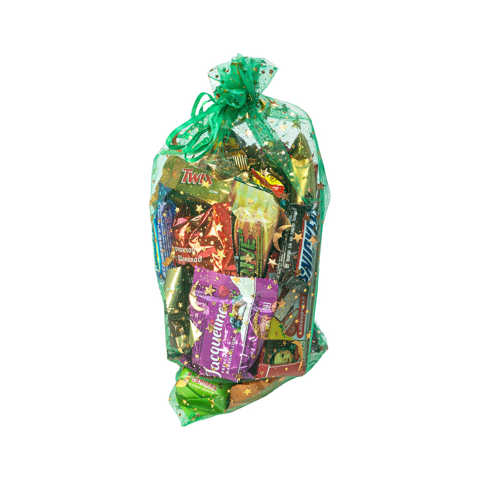 Новогодние сладкие подарки в текстильном мешочке - универсальный выбор, если речь идет о новогоднем празднике в школе или детском саду. “Лунная ночь” - это компактный бюджетный подарочный набор, упакованный в зеленый текстильный мешочек, сверху надежно перевязанный веревочкой. В состав подарка входит входит 500 грамм разнообразных кондитерских изделий на любой вкус: желе, бисквиты, батончки, шоколадные конфеты и многое другое. Также в мешочке можно найти небольшой памятный сувенир в виде символа наступающего года - очаровательной грациозной лошадки.